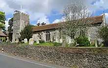 The village church, dedicated to St James the Great, was built in the 14th century as a replacement for an earlier Saxon chapel. In July 1555 the vicar of Staple, John Bland, on the orders of Queen Mary, was burnt at the stake at Martyr's Field, Canterbury. In hisThe History and Topographical Survey of the County of Kent (1778–99), Edward Hasted describes the church as consisting of "two isles and two chancels, having a tower steeple at the west end, in which are four bells. The church is remarkably long and low. The south isle and chancel are upon the same level, nor is there any separation between them. On the sides of the chancel are rails, very low, about two feet from the wall, very unusual." The restoration of the church was completed in 1868 by George Edmund Street.[5] It has been a Grade I listed building since 11 October 1963.[6]