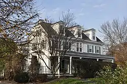 The first house on the site was built in 1688 by Deacon John Staples, a weaver and Newton's first schoolmaster. Staples and his wife had no children of their own, but raised several boys including Moses Craft, a relative of Mrs. Staples. When the Deacon died, Craft inherited the property. Craft rebuilt the house on the original foundation around 1750, constructing a colonial farmhouse two and a half stories high with five windows and two rooms across, and one room wide, with two chimneys running up the back, each serving two rooms. In 1768, he built an addition, adding a kitchen where the original Staples' house kitchen had been. Craft died in 1821 at the age of 85, leaving no will and an estate seriously in debt. As ordered by the judge of probate, the house and surrounding land was sold at auction. Moses' son, Moses Craft II, won with the winning bid of $5.50. In 1824, Moses Craft II sold the property to his cousin William Wiswall. It is believed that Wiswall was responsible for remodeling the house to give it a Federal ornament.[2] David Kinmonth, a Boston merchant, bought the house in 1858 and remodeled it, giving Victorian overtones to its basic Georgian style. The house was remodeled again during the American Civil War. Ownership of the house changed hands many times during the 20th century. It was last sold in 2017 to a non-profit community music school, the Suzuki School of Newton and Suzuki Preschool, and continues to be an icon in the heart of Waban Village. The house was added to the National Register of Historic Places in 1986 as the Staples-Craft-Wiswall Farm and in 2015 was designated a City of Newton Local Landmark. Despite the many modifications that it has undergone, the house stands today on the original 1688 stone foundation, which is up to one meter thick in some places.