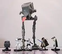 On November 11, 2005 a special "AT-AT Imperial Walker Colossal Pack" was released, which came with the AT-AT.[9] The AT-AT is scaled correctly to the other miniatures, and stands at fourteen inches high and eighteen inches long.[9]