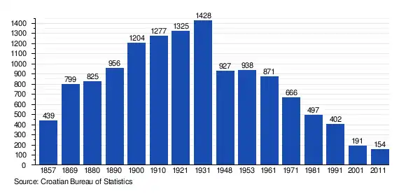 According to the 1991 census,[2] 68.16% of the village population were ethnic Serbs (274/402), 29.60% were ethnic Croats (119/402), 1.49% were Yugoslavs (6/402) and 0.75% were of other ethnic origin (3/402).