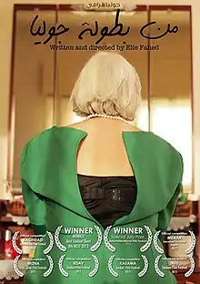 Starring Julia (Arabic: من بطولة جوليا, romanized: Min Boutoulet Julia) is a 2012 Lebanese short film written and directed by Elie Fahed. The short film premiered at the Beirut International Film Festival[1] in 2012 where it got the Orbit Special Jury Prize, and traveled the world after it, taking part in the Baghdad International Film Festival, Menar Film Festivalin Bulgaria, Mizna's 8th Twin Cities Arab Film Festival[2], FICMEC 5th edition[3], Notre Dame University – Louaize International Film Festival[4], Outbox Film Festival, and won the "Best Student Short Film" award at the Monaco Charity Film Festival in 2013.[5][6]