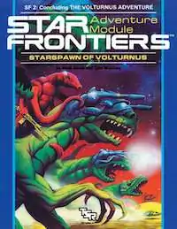 TSR published the science fiction role-playing game Star Frontiers in 1982, a boxed set that included the game's first adventure, SF-0 Crash on Volturnus. TSR quickly followed this with the release in the same year of two more adventures in the "Volturnus Trilogy", SF-1 Voltrunus, Planet of Mystery, and SF-2 Starspawn of Volturnus, a 32-page book with a cardstock outer folder, written by Mark Acres and Tom Moldvay, with interior art by Jim Holloway, and cover art by Tim Truman.[4]