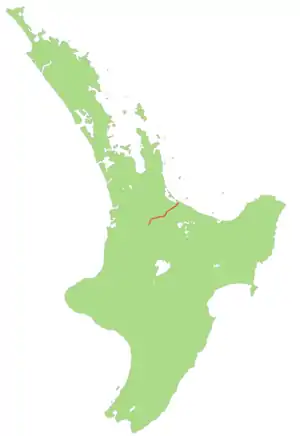 State Highway 29 (SH 29) is a New Zealand state highway that travels over the Kaimai Ranges linking the Bay of Plenty and Waikato regions. For most of its length, SH 29 is a two-lane single carriageway with occasional passing lanes and slow vehicle bays. 5 km of it near its eastern terminus is part of the Takitimu Drive Toll Road.[1]