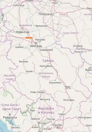 | 12702 | 7.448 km (4.628 mi) | 14.138 km (8.785 mi) | Golubinci – Stara Pazova (centre) |
