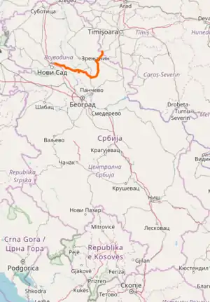 | 12909 | 2.700 km (1.678 mi) | 128.805 km (80.036 mi) | Jaša Tomić – Serbia – Romania border at Jaša Tomić |
