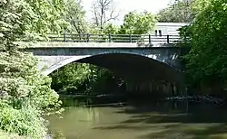 The State Street Bridge is a historic structure located in Mason City, Iowa, United States. The span carries East State Street over Willow Creek for 62 feet (19 m). In the mid- to late-19th century, State Street was the only road into town from the east. There was a bridge at this crossing from at least 1875, but it is unknown what kind of bridges or how many served the crossing.[2] Completed in 1903, this bridge features a barrel arch with filled spandrels. Although the original guardrails have been replaced, it is the oldest roadway arch bridge in Cerro Gordo County.[2] It was listed on the National Register of Historic Places in 1998.[1]