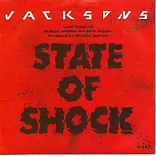 "State of Shock" is a 1984 single by the Jacksons featuring frontman Michael Jackson and Mick Jagger. It was written by Jackson and guitarist Randy Hansen. The track was originally sung with Freddie Mercury as a duet with Jackson,[2] and was later slated for the Thriller album; however, due to differing time schedules, Jackson ended up recording it with his brothers and Jagger. A clip of the song (an instrumental part) was used on the Immortal album in 2011.