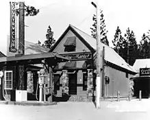 To the rear of the Stateline Market, east of Clyde Beecher's Nevada Club 100 feet from the actual state line between California and Nevada, Carl's Place Bar & Club[1] attracted an older crowd of visitors. (Carl's Place would become The Main Entrance Club in 1938, owned by Charles Silver and George "Frenchy" Perry,[2] with a long canopy extending from the club down the alley to U.S. Highway 50[3] between the Stateline Market and the Nevada Club.)