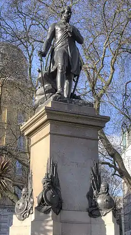 The statue of James Outram, a work by Matthew Noble, stands in Whitehall Gardens in London, south of Hungerford Bridge.[1] It is a Grade II listed structure.