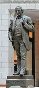 The background history of the bronze statue starts shortly after businessman John Plankinton's death in March 1891. The idea for a statue or bust was proposed seven months later in October 1891.[1] Richard Henry Park, known as the Florentine sculptor, had already done statues for the Plankinton family, so was commissioned by his son William to make the bronze statue in 1892.[2][3] Park, who spent six months in Chicago working on the John Plankinton bronze statue,[3] was perhaps a surprising choice as Park had betrayed Elizabeth Plankinton (John's daughter) and married another woman in 1887, leaving her disappointed and distraught.[4][5]