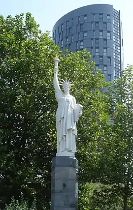 The Leicester Statue of Liberty is a small replica of the Statue of Liberty (Liberty Enlightening the World) by local stonemason Joseph Morcom installed at the twin Soar River bridges in Leicester, England.[1]