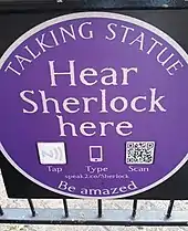 Since 2014, Doubleday's sculpture has been one of a series of "Talking Statues" across London where passers-by can receive a simulated telephone call from the statue's subject by scanning a QR code or visiting a link. The Holmes statue is voiced by the actor Ed Stoppard with a script written by the English novelist Anthony Horowitz which humorously gives details relating to the statue's appearance.[4]
