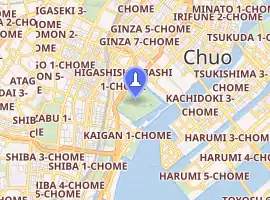 A statue of Umashimadenomikoto (可美真手命) by Akira Sano is installed in Tokyo's Hamarikyu Gardens, in Japan.
