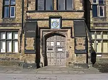 - "The plaque over the front door shows the date, 1604 , his status as a Knight of the Realm and the coats of arms of his parents, Peter Frecheville and Margaret Kaye"