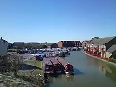 An Ordnance Survey map of 1958 shows only the school and roadside dwellings south of the village, between the railway and the canal.[5] Later in the 20th century much housing was built here, followed by a marina for canal users, with waterside houses and apartments.[6] These developments made the built-up area contiguous with Hilperton, on the other side of the canal. The population of the parish increased from 453 at the 2001 census to 1,868 in 2011.[1]