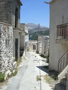 Stavrochori (Greek: Σταυροχώρι) is an historic village of eastern Crete. It belonged to the former province of Sitia and later to the former Makry Gialos municipality. Today it is part of Ierapetra municipality. It is located in a wooded valley, 29 kilometers north east from Ierapetra and 35 kilometers southwest from Sitia. Once it was the most populous village of the region and the administrative center of the surrounding settlements. Since the last 30 years, the majority of its population has moved to the seaside settlement of Koutsouras, 7 kilometers to the south. Stavrochori is a traditional village with many sights. It is also the birthplace of Ioannis Papachatzakis or "Stravogiannios", a violinist, who lived and died in Ierapetra. He was one of the most important Cretan traditional organ players of the last century.[1][2][3]