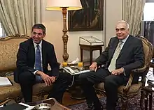 E.U.S.R. Stavros Lambrinidis was succeeded by M.P. Stavros Dimas in November 2011, after an agreement between the parties that participated in the Coalition Government.