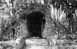 Pilgrimages were made to the shrine from throughout the state, and thousands of people crowded the narrow road from the highway to the small lake, often parking a great distance away and walking to the shrine. This shrine, which was complete with tableaux and scenes of the Holy Land in murals, sculpture and paintings,[3] would also host the Feast of Saint Anne on July 26 and thousands would attend this event[4][5] and Mardi Gras was also hosted here.[6] The shrine was de-sanctified by the Diocese of St. Augustine in the 1960s, and most of the shrine was removed to prevent vandalism. Some historical traces remain.