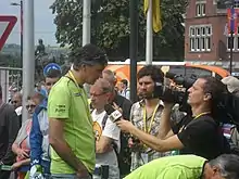 ![]() Zanatta being interviewed as DS of team Liquigas at the 2012 Tour de France | |