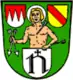 The community's arms might be described thus: Vert in base an inescutcheon argent, thereon an uncial N on which a small cross pattée sable, issuant from the inescutcheon Saint Sebastian proper with nimbus of the second and arrows of the same, one piercing him to the forearm sinister, another to the heart, and two in his hand dexter held in saltire, points to base, in chief dexter an inescutcheon dancetty of three gules and argent, in chief sinister an inescutcheon Or with a bend gules.