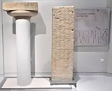 The Stele of Arniadas is an Archaic-period funerary stele in Corfu, Greece, found on the tomb of Arniadas, a warrior. It was intended to mark his grave and honour his memory by enumerating his bravery in a battle near the river Arachthos in the location of ancient Amvrakia, modern-day Arta.[1] The stele was found in 1846 at the necropolis of the Corfu Palaiopolis in the suburb of Garitsa, near the Tomb of Menecrates, after a demolition of Venetian fortifications in the area by the British, who at the time ruled Corfu. The date of the stele is early 6th century BC.