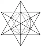 Some modern mystics have associated this shape with the "merkaba",[6] which according to them is a "counter-rotating energy field" named from an ancient Egyptian word.[7] However, the word "merkaba" is actually Hebrew, and more properly refers to a chariot in the visions of Ezekiel.[8] The resemblance between this shape and the two-dimensional star of David has also been frequently noted.[9]