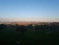 View from Mountain View Street over Table Mountain - The 1969 Tulbagh earthquake[14] centred on Tulbagh in September 1969, at the time of the development of Stellenberg. As remembrance to this event a street was named Tulbagh. This street, together with Vredekloof Street in Vredekloof, Brackenfell, is known for the bird Cape robin-chat commonly known as Jan Frederik.[15]