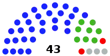 The Stellenbosch Local Municipality council consists of forty-three members elected by mixed-member proportional representation. Twenty-two councillors are elected by first-past-the-post voting in twenty-two wards, while the remaining twenty-one are chosen from party lists so that the total number of party representatives is proportional to the number of votes received. In the 2021 local government elections, the Democratic Alliance (DA) received a majority of twenty-eight seats on the council.