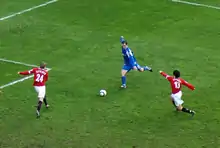 Clemence was capped by the England national under-18 team, scoring two goals in seven appearances, between 1995 and 1996.[65] He was capped once by the under-21 team, as a substitute in a 2–0 away win over Sweden on 4 September 1998.[66] He was eligible to play for Northern Ireland through his Northern Ireland-born grandmother.[67] Clemence rejected the chance to represent the country in both May and July 2004, a decision which manager Lawrie Sanchez said he would respect.[68] Sanchez did ask Clemence to reconsider in October 2006,[69] but he never represented a national team at senior level.