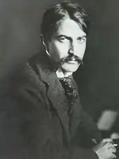 After staying in Limpsfield, Surrey, for a few days, Crane and Taylor settled in Ravensbrook, a plain brick villa in Oxted.[125] Referring to themselves as Mr. and Mrs. Crane, the couple lived openly in England, but Crane concealed the relationship from his friends and family in the United States.[126] Admired in England, Crane thought himself attacked back home: "There seem so many of them in America who want to kill, bury and forget me purely out of unkindness and envy and—my unworthiness, if you choose", he wrote.[127] Velestino the dog sickened and died soon after their arrival in England, on August 1. Crane, who had a great love for dogs,[128] wrote an emotional letter to a friend an hour after the dog's death, stating that "for eleven days we fought death for him, thinking nothing of anything but his life."[129] The Limpsfield-Oxted area was home to members of the socialist Fabian Society and a magnet for writers such as Edmund Gosse, Ford Madox Ford and Edward Garnett. Crane also met the Polish-born novelist Joseph Conrad in October 1897, with whom he would have what Crane called a "warm and endless friendship".[130]