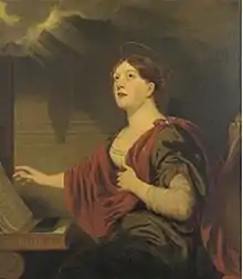 Kemble also published a collection of his writings Odes, Lyrical Ballads and Poems on various occasions (1809). About Kemble's poetry, John Wilson (Scottish writer) stated, "Stephen Kemble was a man of excellent talents, and taste too; and we have a volume of his poems... in which there is considerable powers of language, and no deficiency either of feeling or of fancy. He had humour if not wit, and was a pleasant companion and worthy man."[25] Of particular interest is Kemble's writing is his reflections on contemporaneous events such as the Battle of Trafalgar, the death of Lord Nelson, the death of Robert Burns, his conversion to the abolitionist movement and support of the Slave Trade Act 1807,[26] the death of his brother-in-law William Siddons.