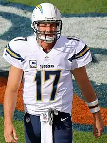 Philip Michael Rivers (born December 8, 1981) is an American former football quarterback who played in the National Football League (NFL) for 17 seasons, primarily with the Chargers franchise. He played college football at NC State and was selected fourth overall in the 2004 NFL Draft by the New York Giants, who traded him to the San Diego Chargers during the draft. Rivers was a member of the Chargers for 16 seasons and played his final season for the Indianapolis Colts.