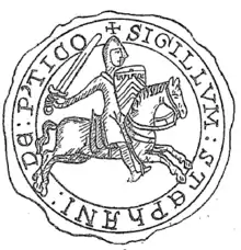 His father and older brother, Geoffrey III, joined the Third Crusade in 1189.[3] During their absence, Stephen shared the administration of the county with the seneschal Warin of Lonray.[4] After Geoffrey's return in 1192 or 1193, Stephen accompanied him to England.[2] It has sometimes been thought that Stephen and Geoffrey divided the Perche between themselves, but this is based on a misreading of a document of 1202.[5]