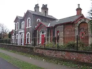 The station house is now a grade II listed building.[1] An old map of the area shows coal and timber sidings to the south of the station building.