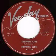 "Steppin' Out" (or sometimes "Stepping Out") is a blues-instrumental composition recorded by American blues musician Memphis Slim in 1959. It was released by Vee-Jay Records as a single and on Slim's At the Gate of the Horn album. Although both releases list L. C. Frazier (another of Memphis Slim/Peter Chatman's pseudonyms) as the writer, Vee-Jay owner James Bracken is often credited on versions by other performers.