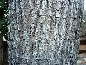 First described by the botanist William Botting Hemsley in 1894, this species grows to about 10 metres in height with a trunk of some 30 cm in diameter covered in thick, greyish-brown bark, becoming almost black with age, and cracking in a rectangular pattern. Its unusual spiny fruits and palmately compound leaves make this an easily identifiable tree. It was illustrated by Cythna Letty in Flowering Plants of South Africa, vol. 32, plate no. 1279.[3]