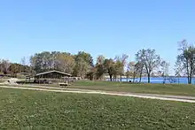William C. Sterling State Park is a public recreation area located in Frenchtown Charter Township with a small portion lying within the city limits of Monroe, Michigan. It is the only Michigan state park located on Lake Erie. The park encompasses 1,300 acres (530 ha) of mostly man-made lagoons and beachfront near the mouth of Sandy Creek. The main attractions at the park include a 256-site campground, beach area, boat launch, and shore fishing lagoons. There are over seven miles (11 km) of biking and hiking trails within the park.[4]