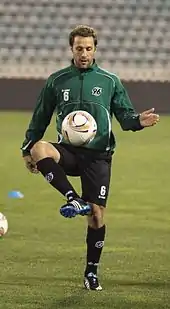 Cherundolo speaks English and German at native level, having spent his entire professional career in Germany.[28] A popular figure with Hannover fans, he is known as "Dolo" and affectionately nicknamed "Mayor of Hannover".[29] Cherundolo married Mandy Rosier on New Year's Eve 2009 at the local Catholic parish church St. Joseph.[30][31][32] After his retirement from soccer, he has resided with his family in Großburgwedel, near Hannover. In 2021, Steve was elected to the National Soccer Hall of Fame as a player inductee.
