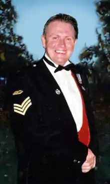 Sergeant Steven Mark Roberts (1970-2003)[1] was the first British soldier to die in the 2003 invasion of Iraq on 24 March 2003. He was accidentally shot by a colleague using a tank-mounted machine gun while he was struggling with an Iraqi protester at a check point in Az Zubayr, near Basra. The Iraqi protester was also killed in that same incident. The 19 year old gunner who shot Roberts had not been properly trained that the gun was inaccurate at short range. Sgt Roberts had been ordered to give up his body armour 3 days before he was fatally shot. The inquest held almost 4 years later into his death concluded he would have survived had he been wearing enhanced combat body armour.