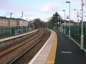 ![]() The rebuilt Stewarton station in 2010, looking towards Glasgow | |