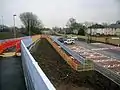 Operations to reinstate a second line between Lochridge Junction near Stewarton and Lugton started in 2008. During the upgrade work (on 27 January 2009), a bridge crossing the A735 road south of the station collapsed as an oil train was passing over it, resulting in several tank wagons in the consist derailing and catching fire.[2] No-one was hurt in the accident; the line was closed between Barrhead and Kilmarnock for three weeks whilst the tankers were recovered and the damaged bridge rebuilt (the structure had already been scheduled for replacement as part of the re-doubling project prior to the accident).