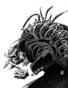 Stickleback is the eponymous title character of a steampunk comic series created by Ian Edginton and D'Israeli appearing in UK comics anthology 2000 AD. Described by his author as a "bad guy," Stickleback is cast initially as a Moriarty-type figure, "The Pope of Crime[, who] secretly presides over the criminal fraternity of a fantastical, grotesque, Gormenghast-style old London town."[1]