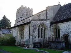 The Church of England parish church of Saint John the Baptist originates from before the Norman Conquest: some parts of the tower are undoubtedly Saxon in date.[10] However, much of the present building dates from the thirteenth century. In 1816 the interior was refurbished by the villagers. Of particular note are the box pews and the twin pulpit and reading desk. In 1966 the church was designated as Grade I listed.[11]