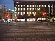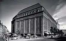 Valter Thomé and his brother won the architecture competition for the department store in 1916. The Thomé brothers were killed in the Finnish Civil War. The building was built in 1930, and the task was then given to Sigurd Frosterus who had been on the second place in the original competition.[1] The department store was designed in nordic Art Deco style.[2] It is part of the Gazelle block in the district of Kluuvi. The new expansion of the building is based on Sigurd Frosterus's plans.