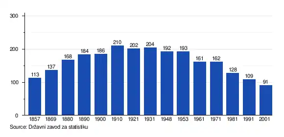 - "Naselja i stanovništvo Republike Hrvatske 1857.-2001". Dzs.hr. Retrieved 2013-12-06.