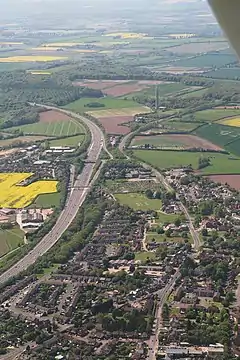![]() Aerial view of Stokenchurch, with the M40 motorway visible at left | |