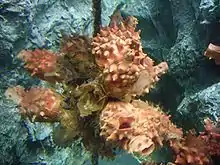 Stolidobranchia is an order of tunicates in the class Ascidiacea.[1] The group includes both colonial and solitary animals. They are distinguished from other tunicates by the presence of folded pharyngeal baskets. This provides the etymology of their name: in ancient Greek, στολίς, ίδος means the "fold" of a cloth. Stolidobranchian sea squirts are also characterized by the complete absence of an abdomen. The abdominal organs of other tunicates are instead located to one side of the pharyngeal basket in this group.