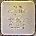HERE LIVED PAVEL FIŠER BORN 1932 DEPORTED 1942 TO THERESIENSTADT MURDERED 6.9.1943 IN AUSCHWITZ |