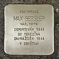 HERE LIVED MAX GESSLER BORN 1878 DEPORTED 1942 TO THERESIENSTADT MURDERED 1944 IN AUSCHWITZ |
