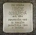 HERE LIVED TEREZIE GESSLEROVÁ BORN 1884 DEPORTED 1942 TO THERESIENSTADT MURDERED 1944 IN AUSCHWITZ |